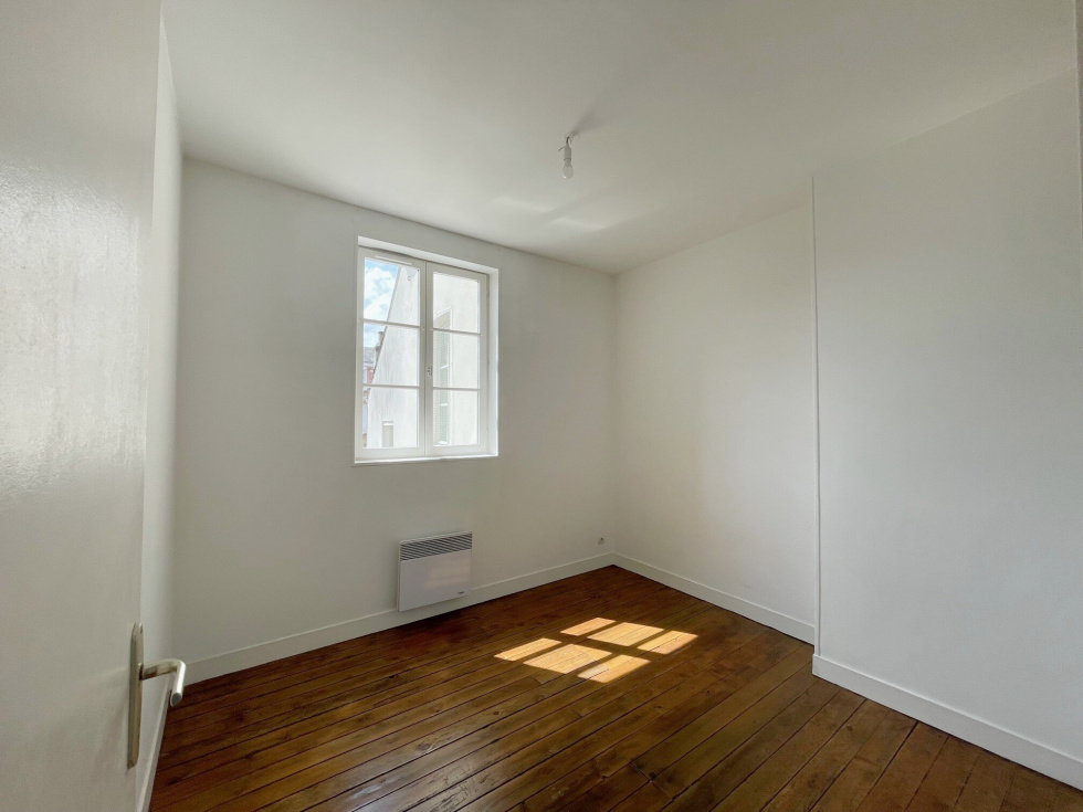 A deux pas du lycée Gambier, et proche du centre-ville, charmant appartement situé au 1er étage et d’une superficie de 49m². Il comprend une cuisine ouverte sur séjour avec cheminée décorative et placards, un couloir desservant une chambre et un bureau avec placards et cheminée décorative ainsi qu’une salle de bains avec WC. Chauffage électrique individuel. Eau individuelle. Disponible le 18/03/2026. Les informations sur les risques auxquels ce bien est exposé sont disponibles sur le site Géorisques : https://www.georisques.gouv.fr