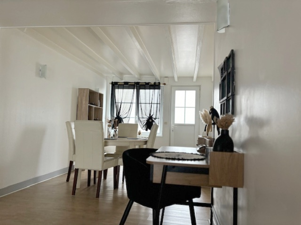 Belle maison de village rénovée d’une superficie d’environ 100m²; comprenant au rez-de-chaussée une cuisine aménagée, un séjour-salon, une chambre, une salle d’eau avec WC. A l’étage, deux chambres parquetées, une salle de bains, avec wc. Les fenêtres sont en double vitrage PVC, volets. Chauffage élécrtique. Une petite cour en béton est également avec le logement. Disponible. Les informations sur les risques auxquels ce bien est exposé sont disponibles sur le site Géorisques : https : //www.géorisques.gouv.fr "