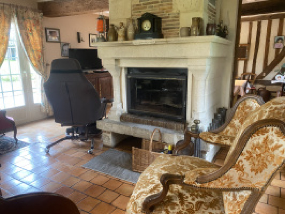 Laissez-vous séduire par sa grande pièce de vie et sa cheminée centrale, et observez la campagne normande depuis la terrasse bordant l’ensemble de la maison