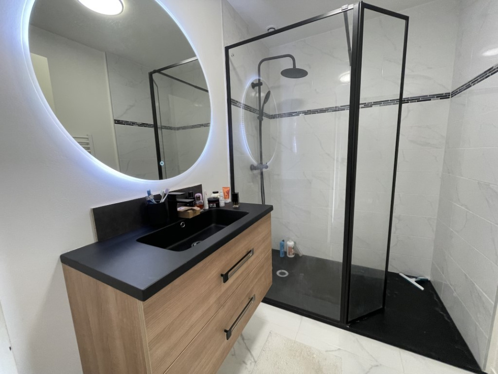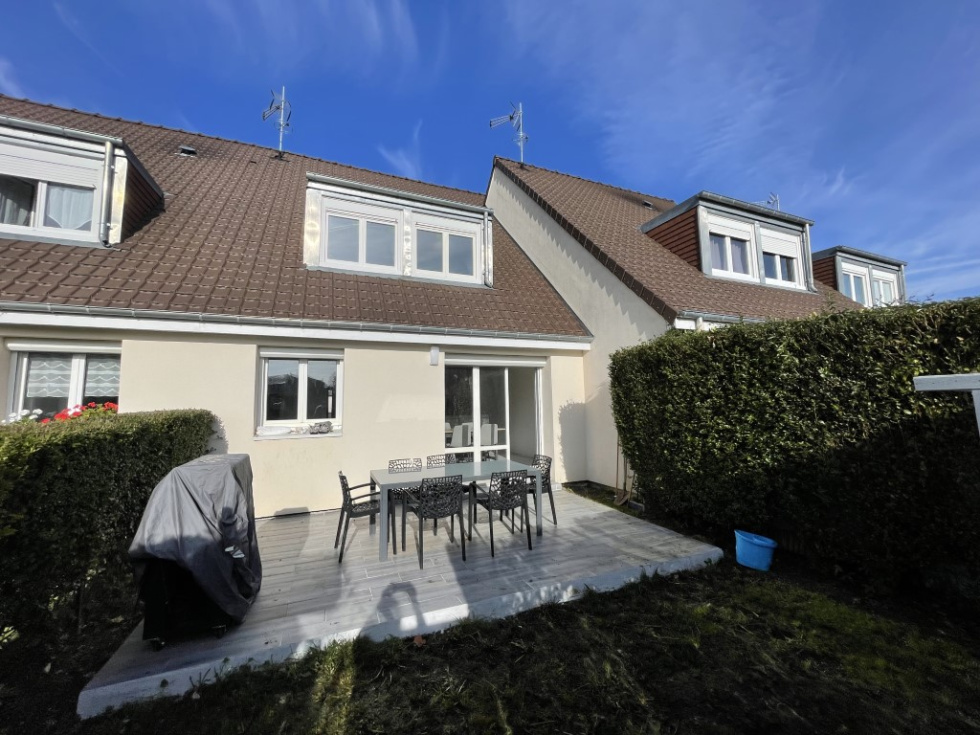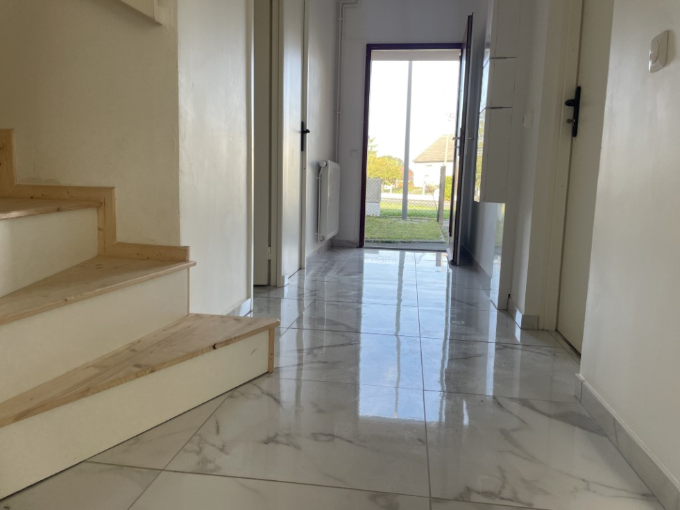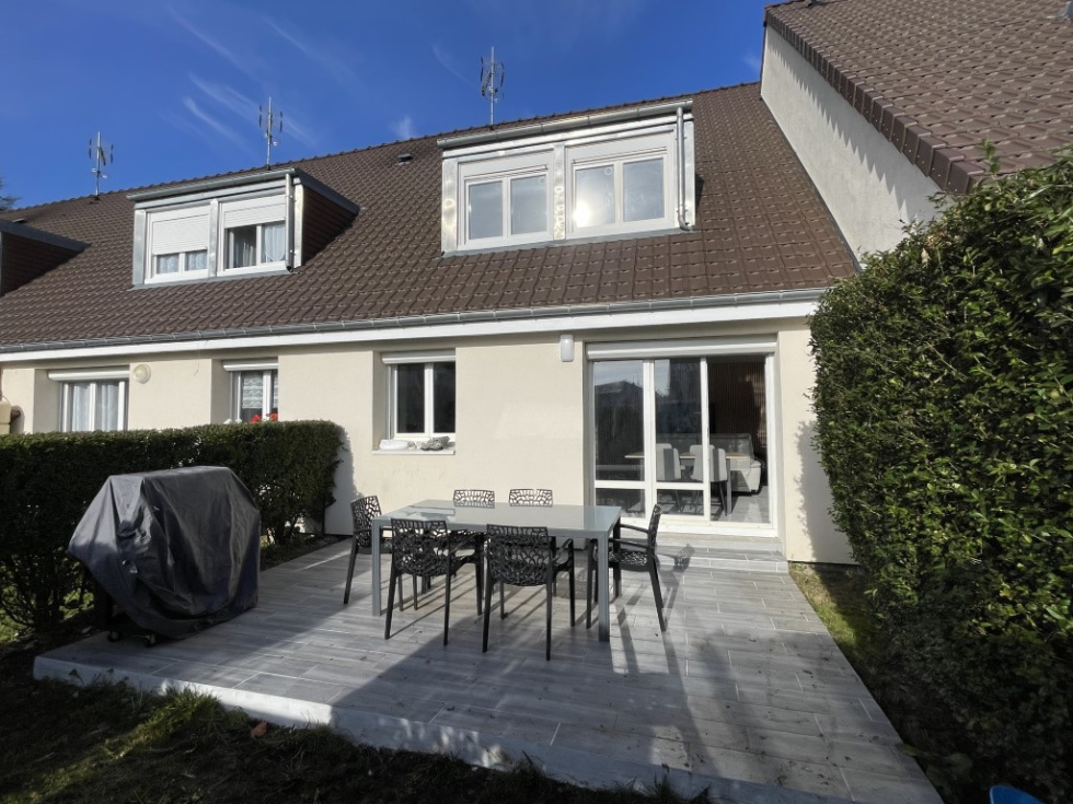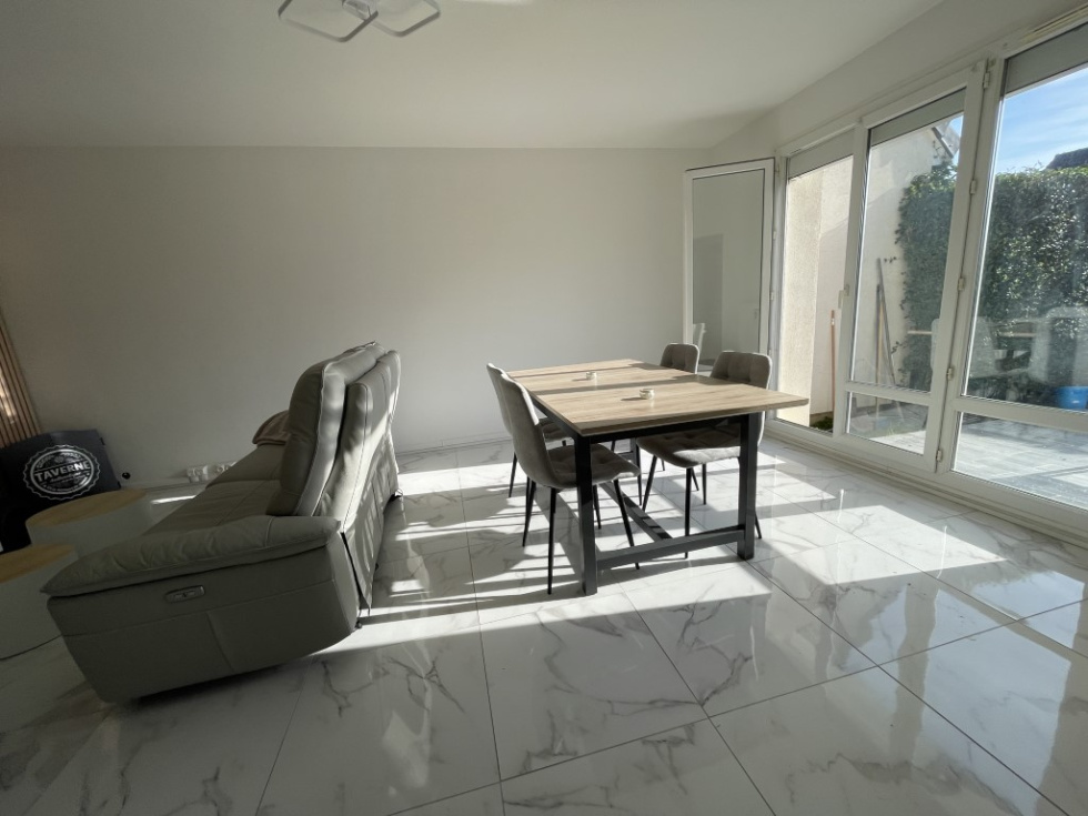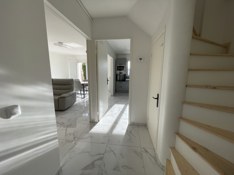 A 12' de Lisieux dans un bourg tous commerces, venez découvrir cette maison mitoyenne entièrement rénovée avec goût, luminosité et confortable. Idéale pour un investisseur ou une famille. Présente une entrée avec dressing, wc, cuisine aménagée-équipée semi-ouverte sur un séjour-salle à manger donnant sur une terrasse avec petit jardin. A l'étage: palier desservant trois belles chambres, un grand dressing et une salle de douche à l'italienne. Garage attenant. Electricité, isolation, fenêtres, assainissement et chauffage aux normes. Tout à l'égout et pompe à chaleur. A visiter rapidement Les informations sur les risques auxquels ce bien est exposé sont disponibles sur le site Géorisques : https:// www.georisques.gouv.fr