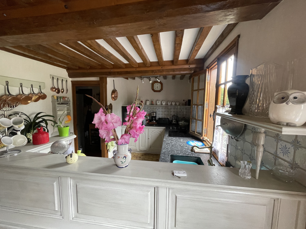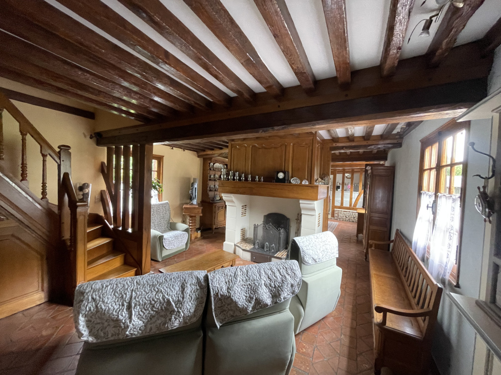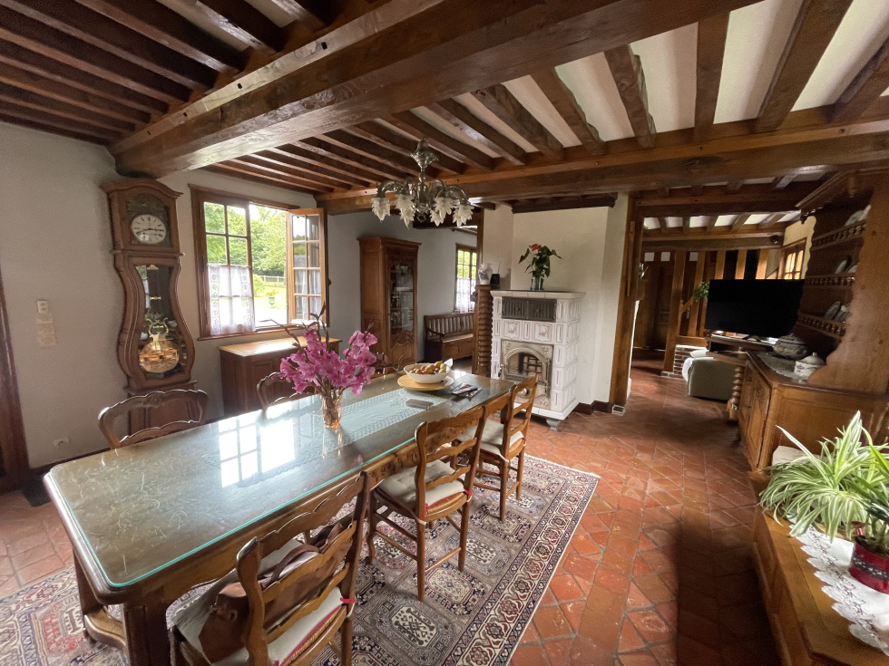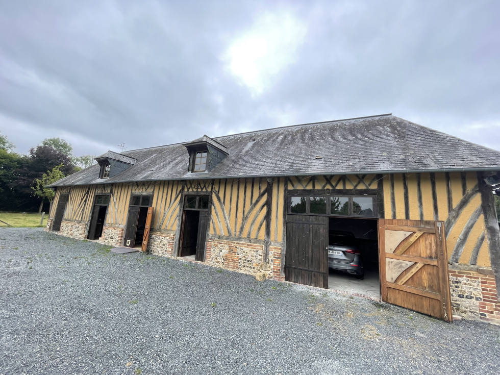 Proche du bourg typique normand de Cormeilles, venez découvrir cette superbe maison en briques et colombages en parfait état d'environ 150 m² offrant le charme des beaux matériaux et une vie de plain-pied. Entrée, salon avec cheminée foyer ouvert, une salle à manger avec un somptueux poêle à bois alsacien, une cuisine semi-ouverte avec son arrière-cuisine, une chambre et sa salle de douche-wc. L'étage présente un vaste palier desservant trois chambres, un bureau et une salle de douche, wc. Grand bâtiment en colombages avec chiens assis en parfait état d'environ 130 m² au sol faisant office de garage, d'atelier et pourquoi pas de box. Rade bituméee, deux herbages, jardin et grand potager. L'ensemble sur une parcelle plate de 10 458 m². A 40 minutes de nos plages normandes, 25 minutes de Lisieux et 2h30 de Paris