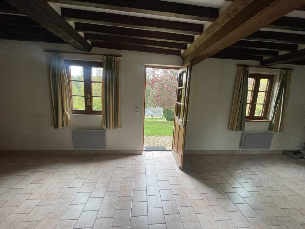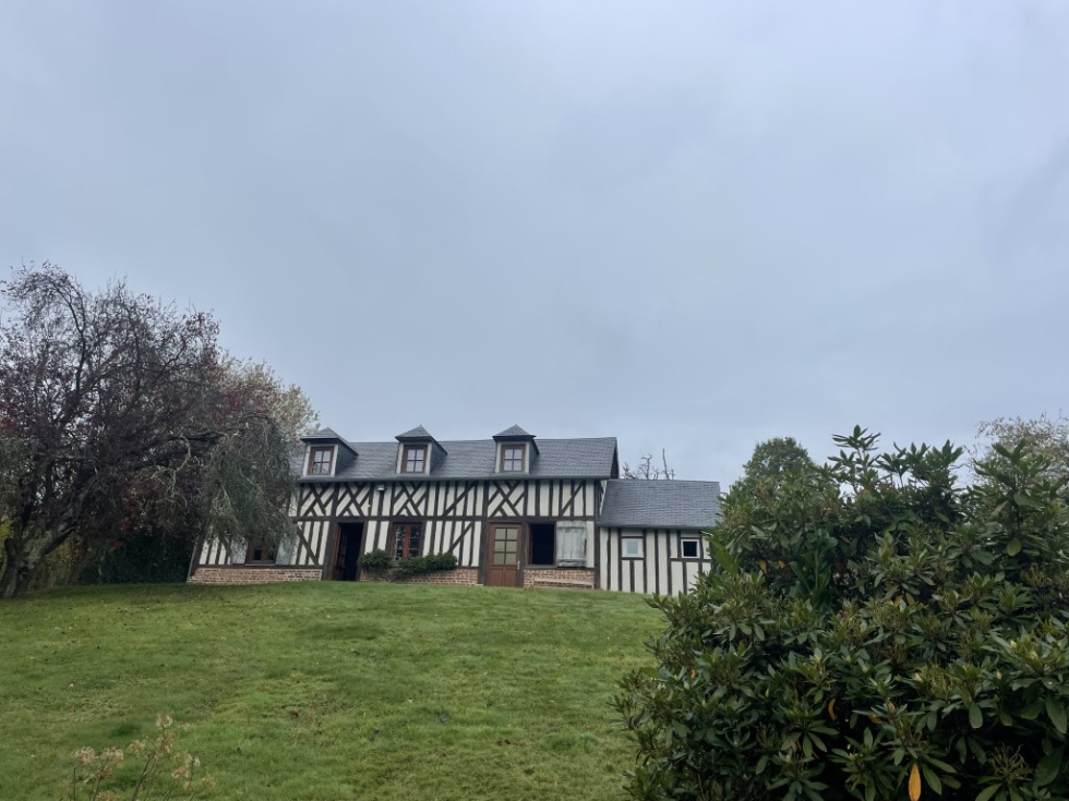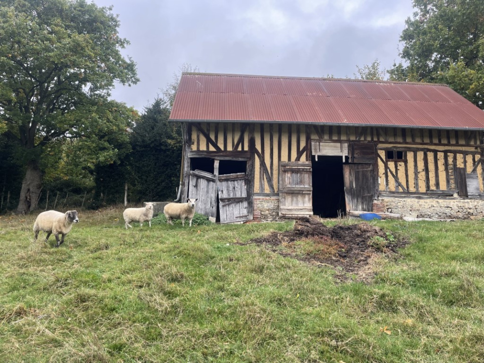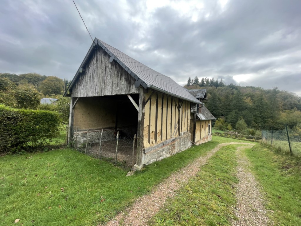 Nichée dans un écrin de verdure paisible, venez découvrir cet ensemble immobilier en colombages surplombant la vallée de la Paquine. Cette ancienne petite ferme se compose d'une maison de 66 m² en brique et colombage offrant un séjour-salon en parfait état, une cuisine, une buanderie, wc et salle de douche. A l'étage: trois petites chambres dont deux en enfilade. Dépendance normande à usage de garage et de remise avec grenier, petit bâtiment normand à usage de poulailler et de bûcher, bergerie, ancienne étable avec grenier. L'ensemble sur un terrain de près de 2 hectares avec partie cour, verger, pré et herbage bordé par une rivière.