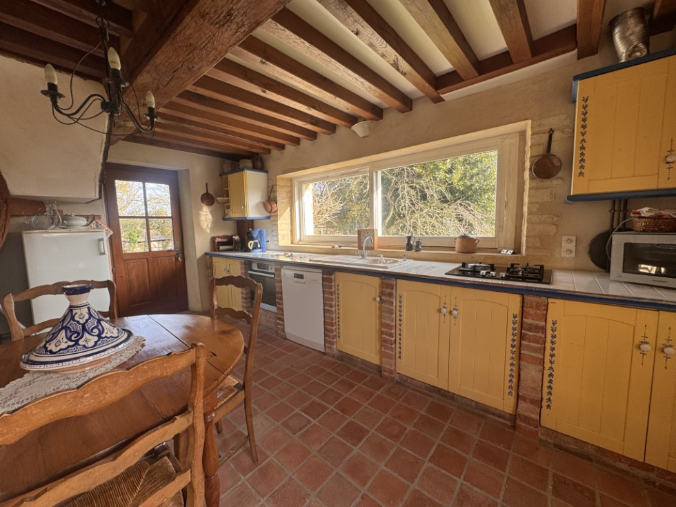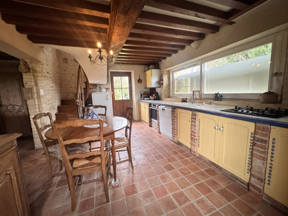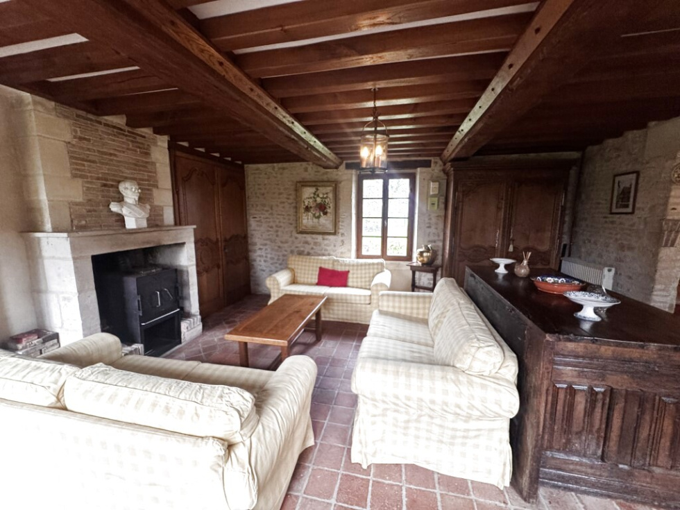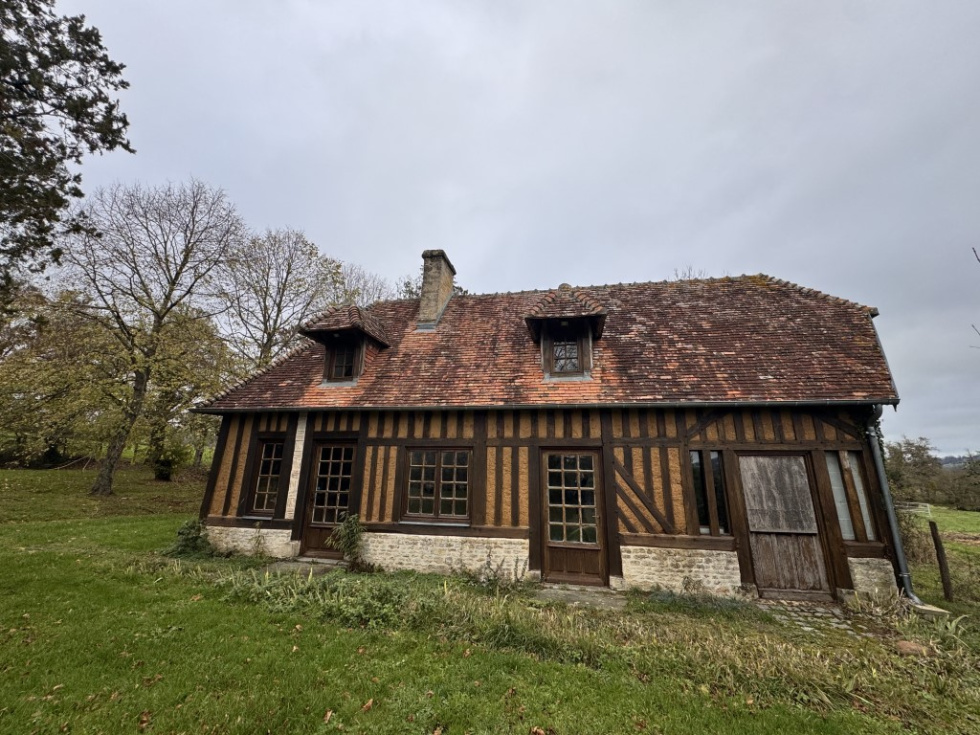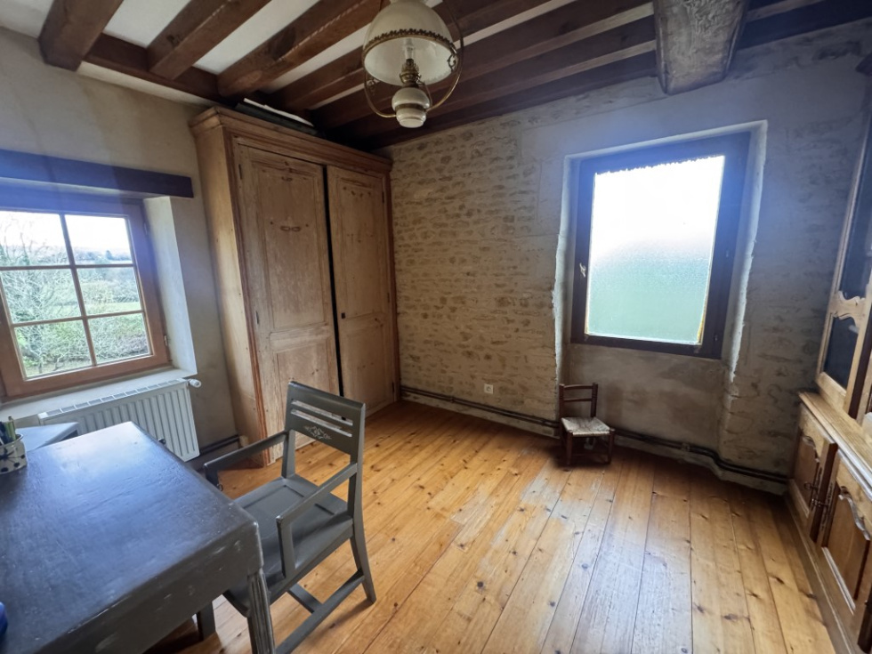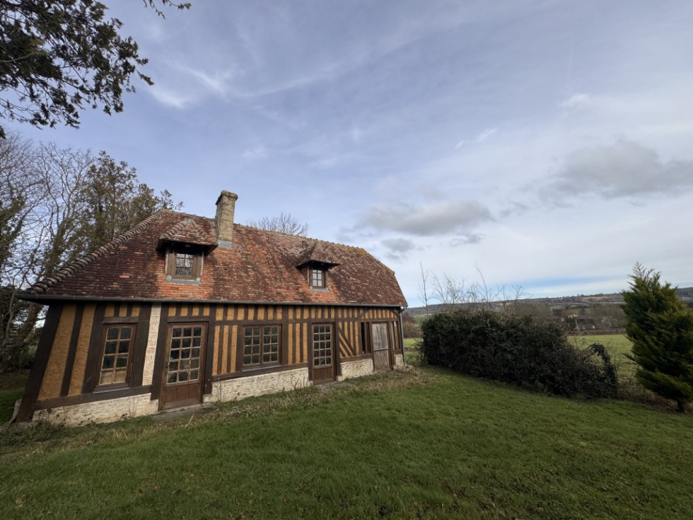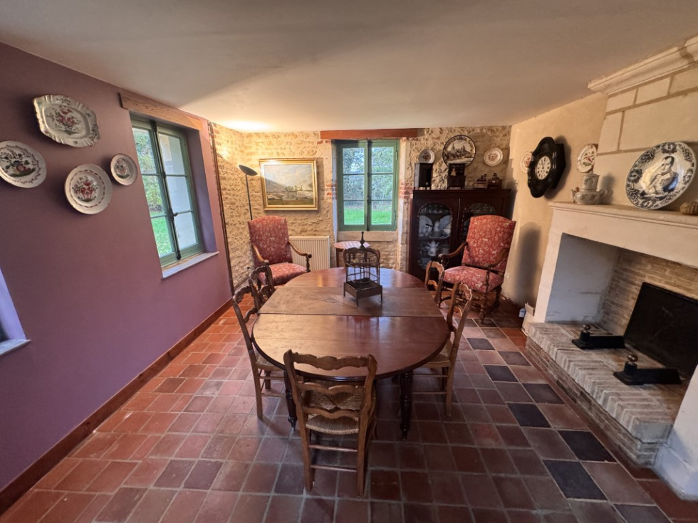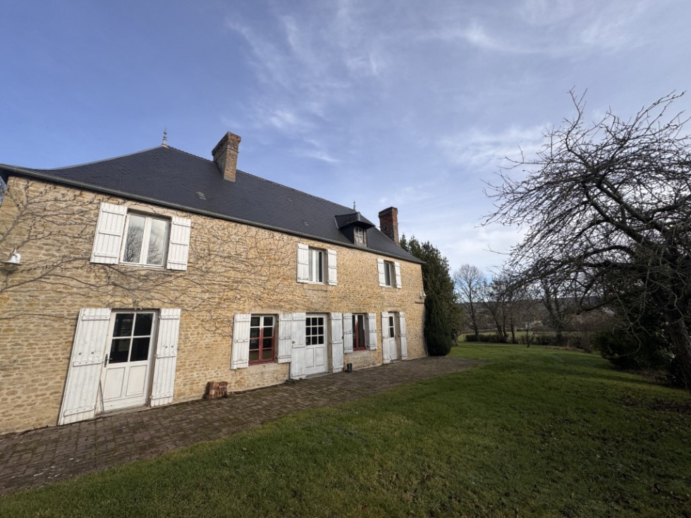 Région L'OUDON. Niché dans un havre de paix et de verdure venez découvrir ce bel ensemble normand offrant une maison principale en pierre de Caen de 125 m², un bâtiment en colombages ancien cabinet d'horlogerie et deux bâtiments agricoles à restaurer. La maison principale comprend une cuisine dinatoire, un salon avec une cheminée-insert, une salle à manger avec un âtre ouvert. Accédez à l'étage par un escalier bois et pierre pour découvrir une grande chambre de 21 m², deux chambres en enfilade et un bureau, salle de bains et wc. Au 2ème étage: grand grenier qui pourrait être aménagé. L'ensemble sur un terrain arboré de 3000 m².