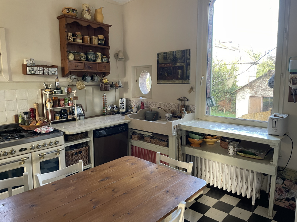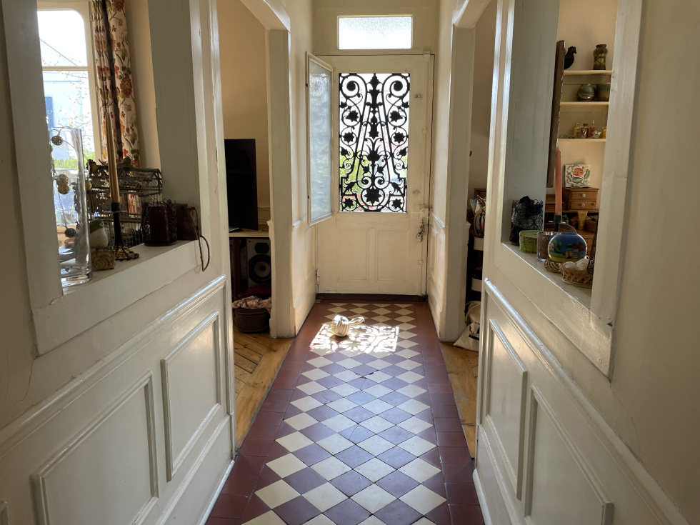A DEUX DU CENTRE-VILLE Belle maison de maitre de 180 m² environ Entrée, salle à manger avec poêle à bois, cuisine aménagée, 2 salons avec cheminées, wc. Parquet en points de hongrie. Au 1er étage : palier, 3 chambres, salle de bains avec wc. Au 2ème : palier, 3 chambres. Atelier ou garage en dépendance. Sous-sol total : chaufferie, buanderie et cuisine d'été.. Le tout sur un terrain arboré avec fruitiers de 800 m² environ. Les informations sur les risques auxquels ce bien est exposé sont disponibles sur le site Géorisques : https:// www.georisques.gouv.fr