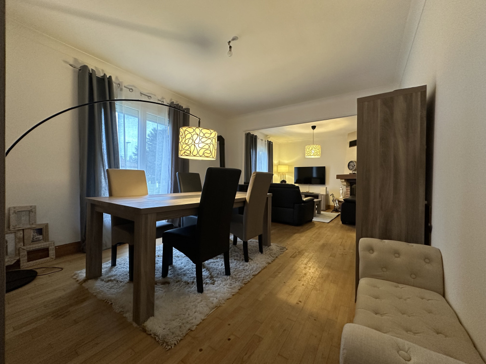 Mer et campagne vous propose une maison de plain pied sur Ouilly Le Vicomte. Au calme dans un quartier pavillonnaire entre Lisieux et Pont l'évêque. Au rez-de-chaussée: entrée avec placards desservant un séjour lumineux, spacieux, disposant d'une cheminée avec insert et d'un poêle à granulés. Une cuisine aménagée et équipée, un dégagement distribuant trois chambres, une salle d'eau avec douche à l'italienne et WC séparé. Un garage, un atelier, un vaste espace de stockage avec réserve et deux terrasses en extérieur.Implantée sur un terrain de 1236 m² plat et arboré. Les informations sur les risques auxquels ce bien est exposé sont disponibles sur le site Géorisques : https:// www.georisques.gouv.fr