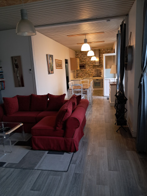 Confortable maison de construction 2018, jardin de 500 m² environ. DPE ; C RDC: Entrée avec placard, cuisine aménagée et équipée (hotte, plaque, four, lave vaisselle) ouverte sur le séjour equipé...