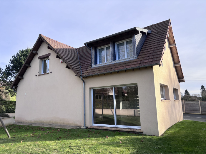 Très bon classement énergétique pour cette maison de style normand construite en 2012 d’environ 169 m² habitables composée de au rdc entrée, séjour salon avec cheminée insert (installé en 2019)...